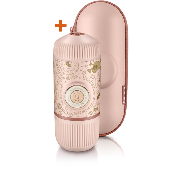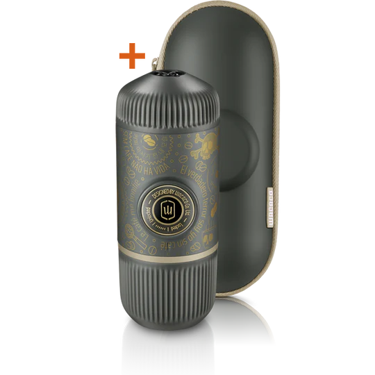 Портативна еспресо машина със защитен калъф. За креативните духове и бунтовниците, ние ви представяме най-новото ни специално издание Nanopresso, Dark Souls. С изключителният си външен вид, Dark Souls Edition знае как да очарова. Украсен с елегантна емайлирана емблема и украсен с фини златни линии по целия корпус, луксозният му завършек съблазнява.